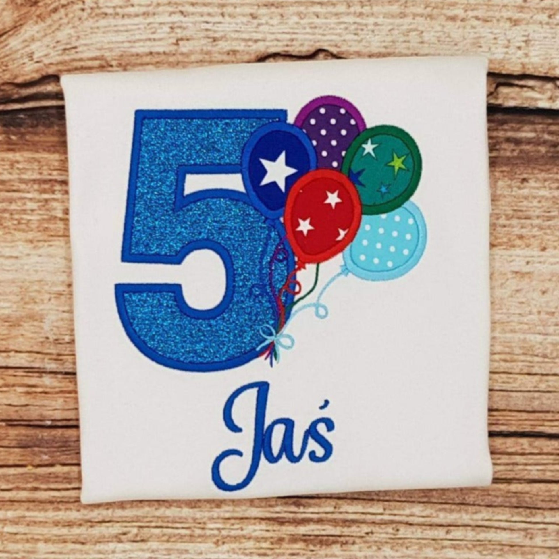 Childrens personalised birthday tshirt, Childs birthday balloons embroidered shirt