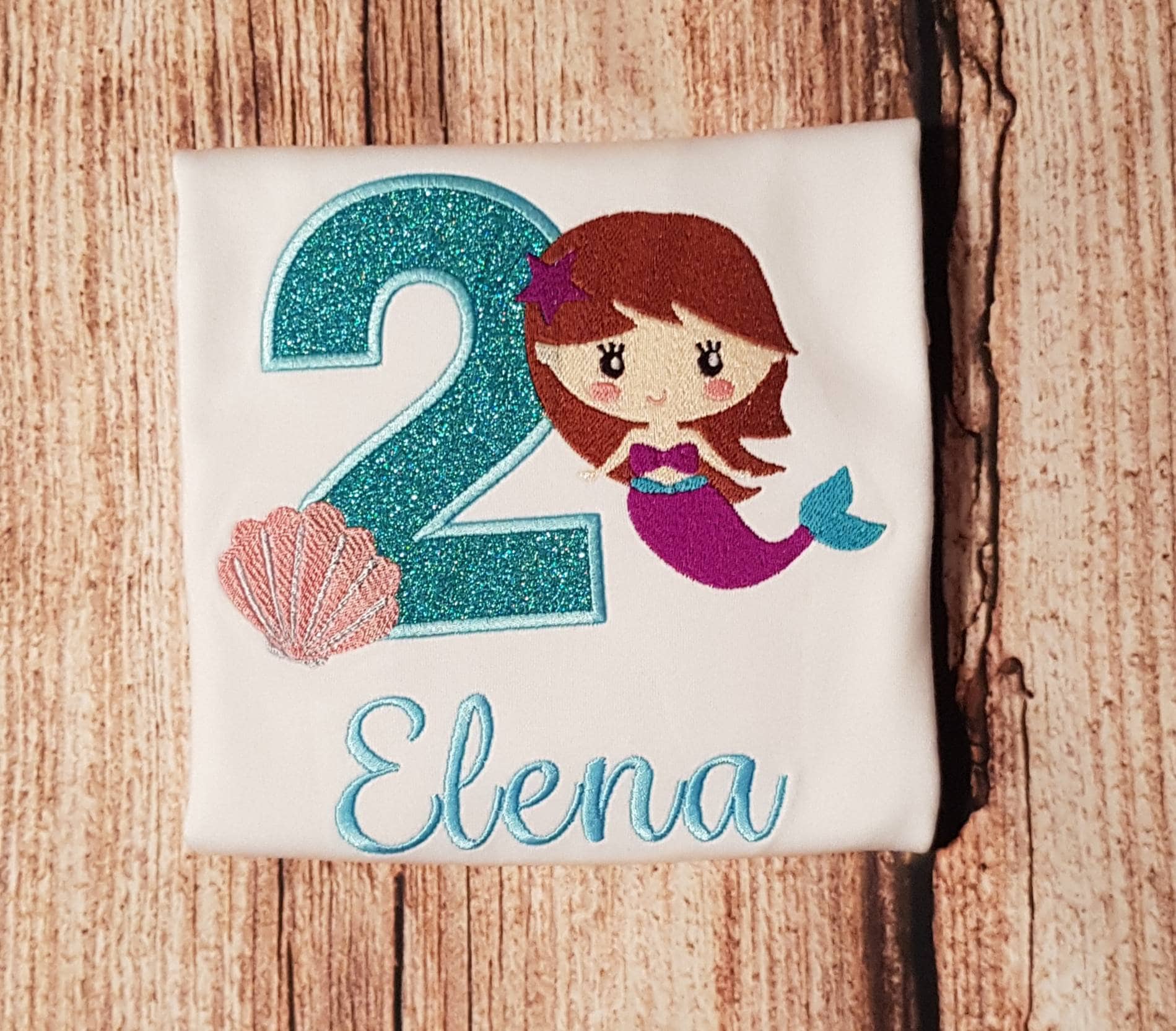 Childs personalised birthday tshirt with a mermaid theme. This would make an ideal gift to help your little one celebrate their big day. I can change the mermaids hair to brown, yellow, black, pink, red, orange.
