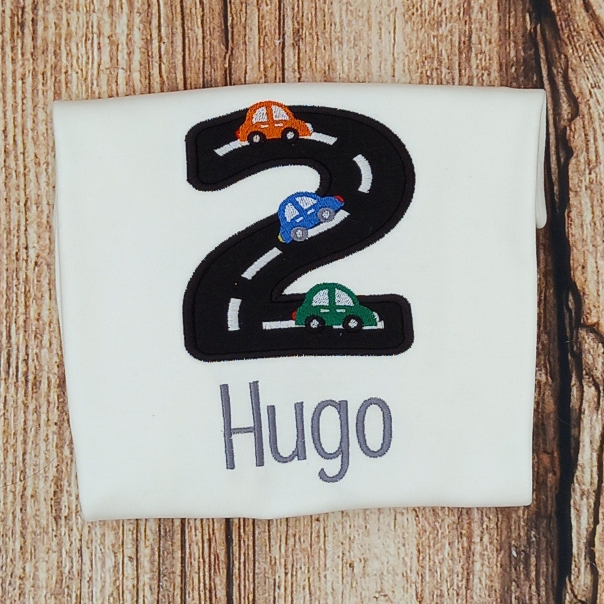 childrens personalised birthday tshirt, kids car tee, childs embroidered road top, personalised gift, vehicle shirt, kids clothes, baby wear