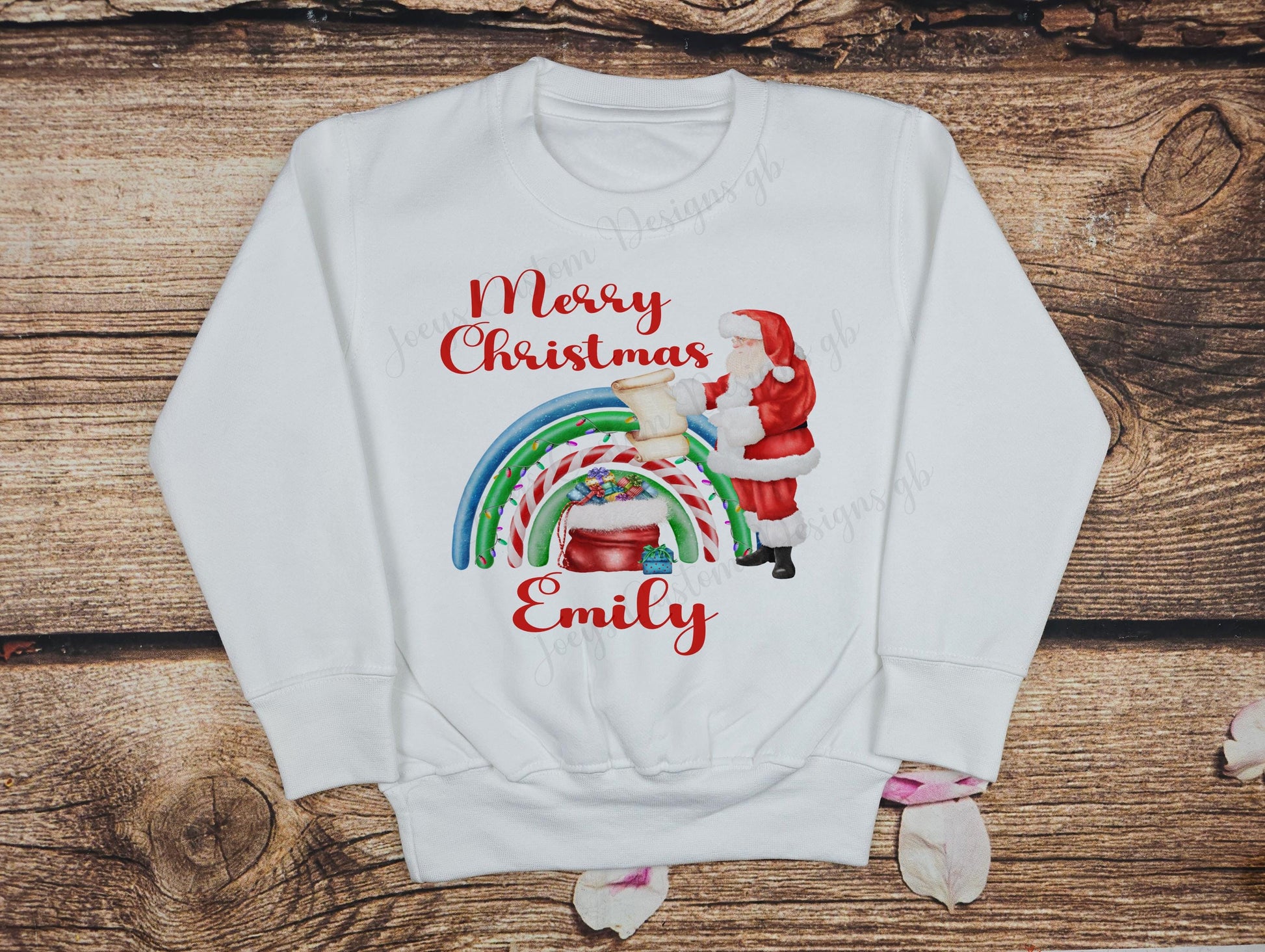 Children's personalised Christmas Jumper, kids festive sweater, Childs winter wardrobe, Santa Rainbow top, Xmas gift