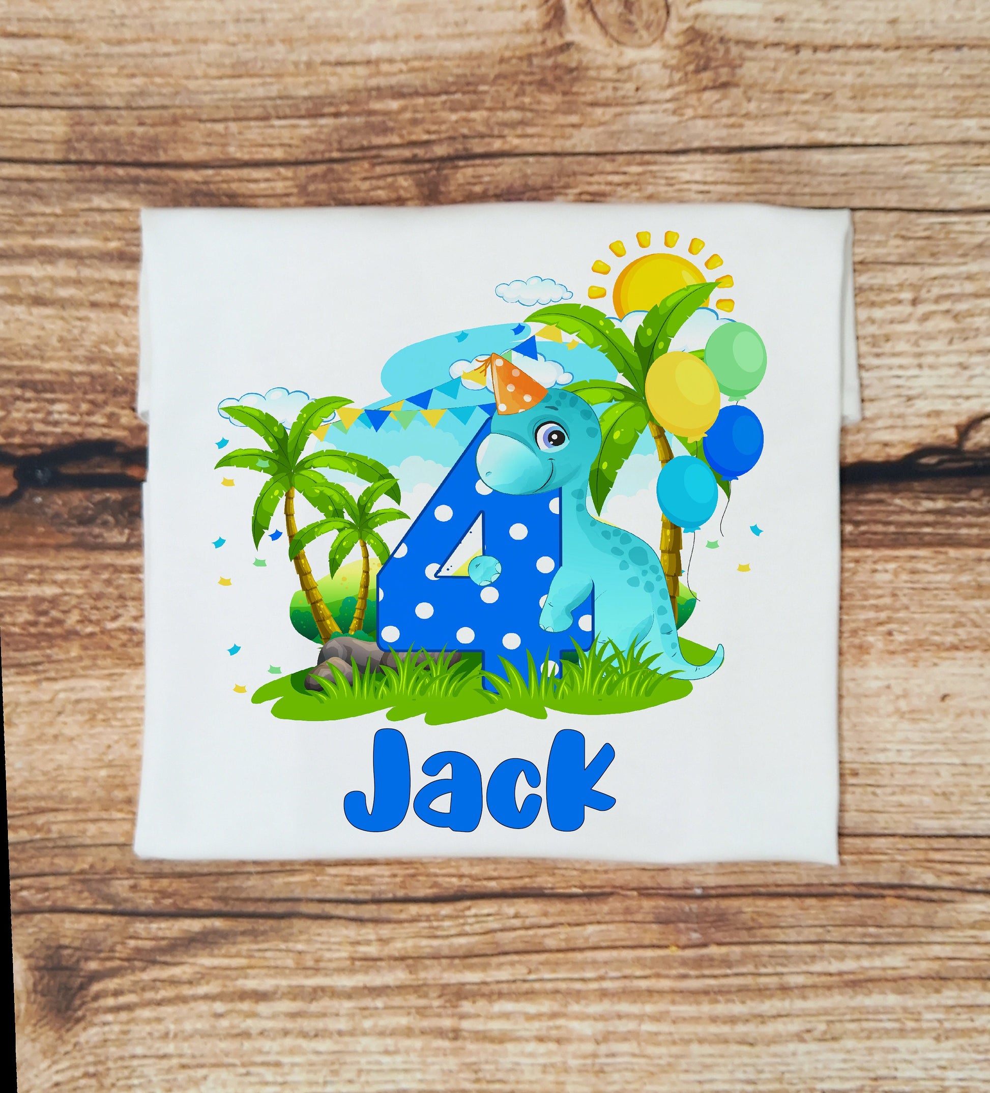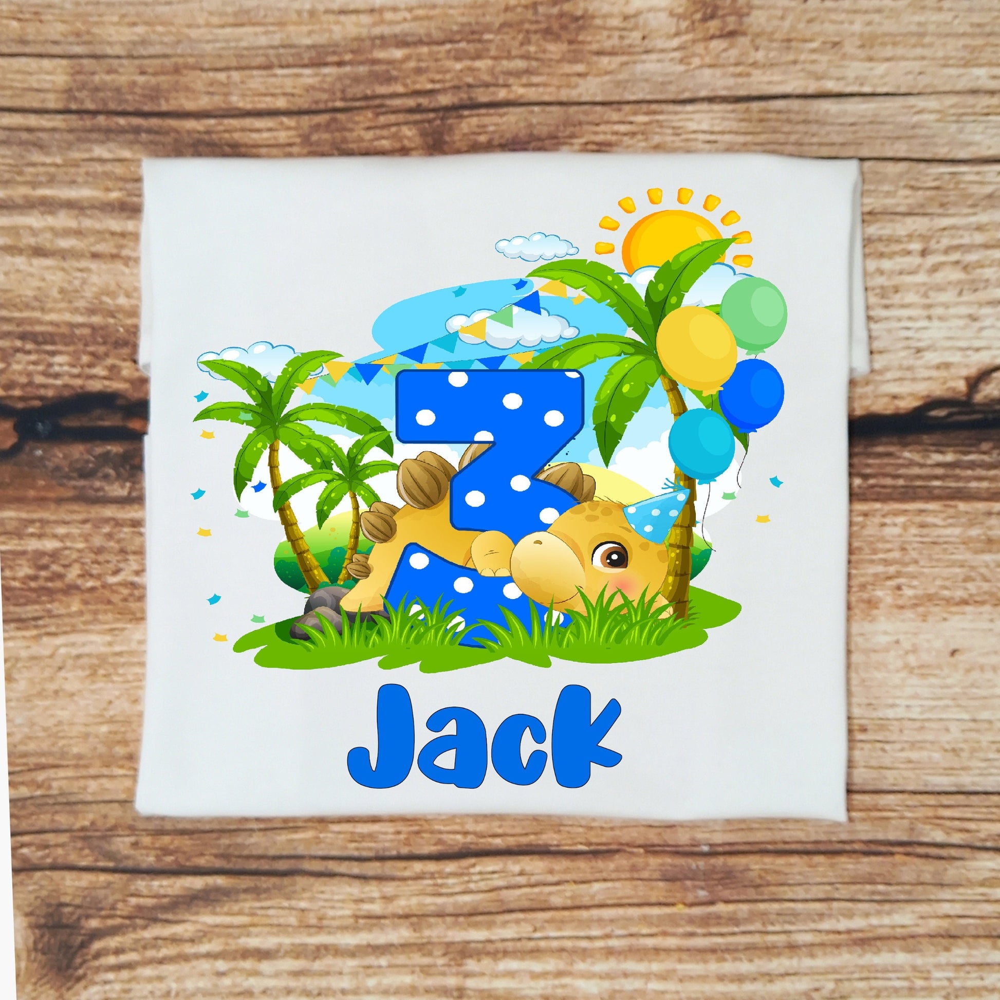 Childrens personalised dinosaur birthday tshirt, kids dino birthday tee, childs birthday gift, dinosaur themed birthday party, dinosaur top