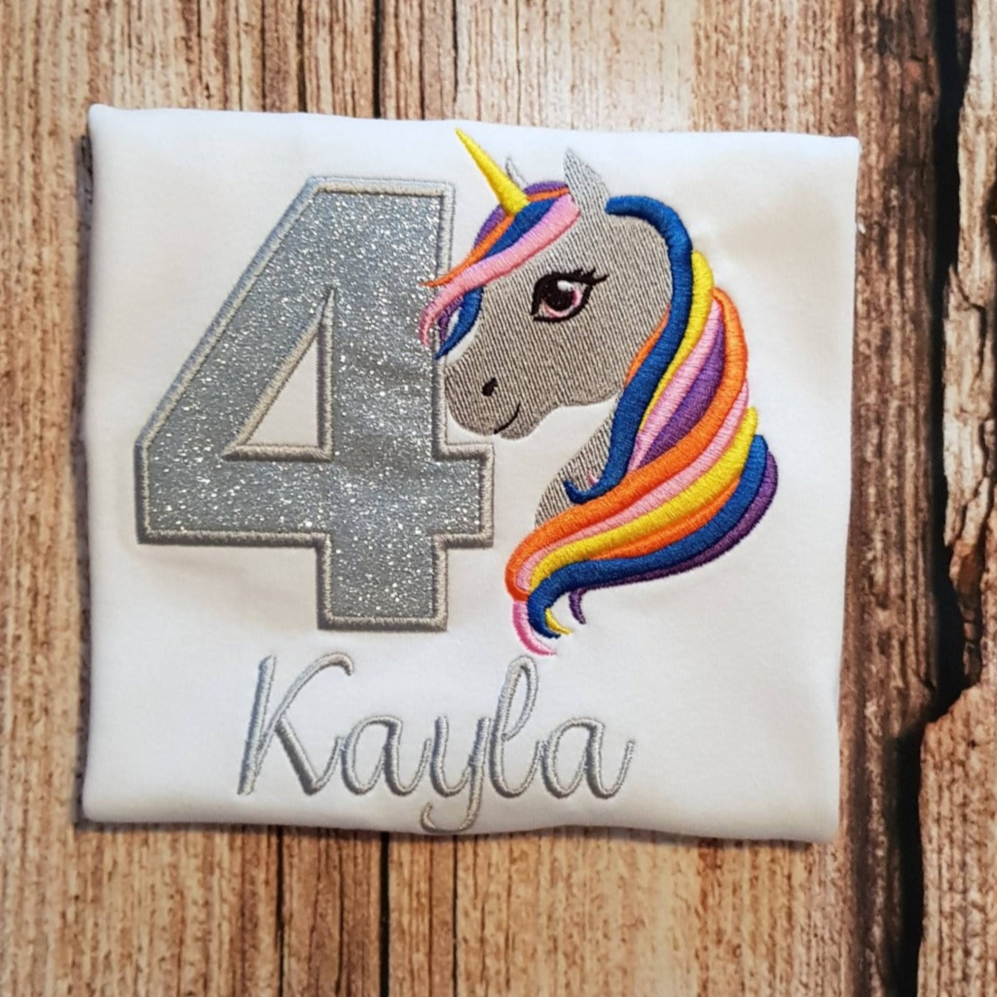 Childrens unicorn birthday tshirt, Child's personalised birthday shirt