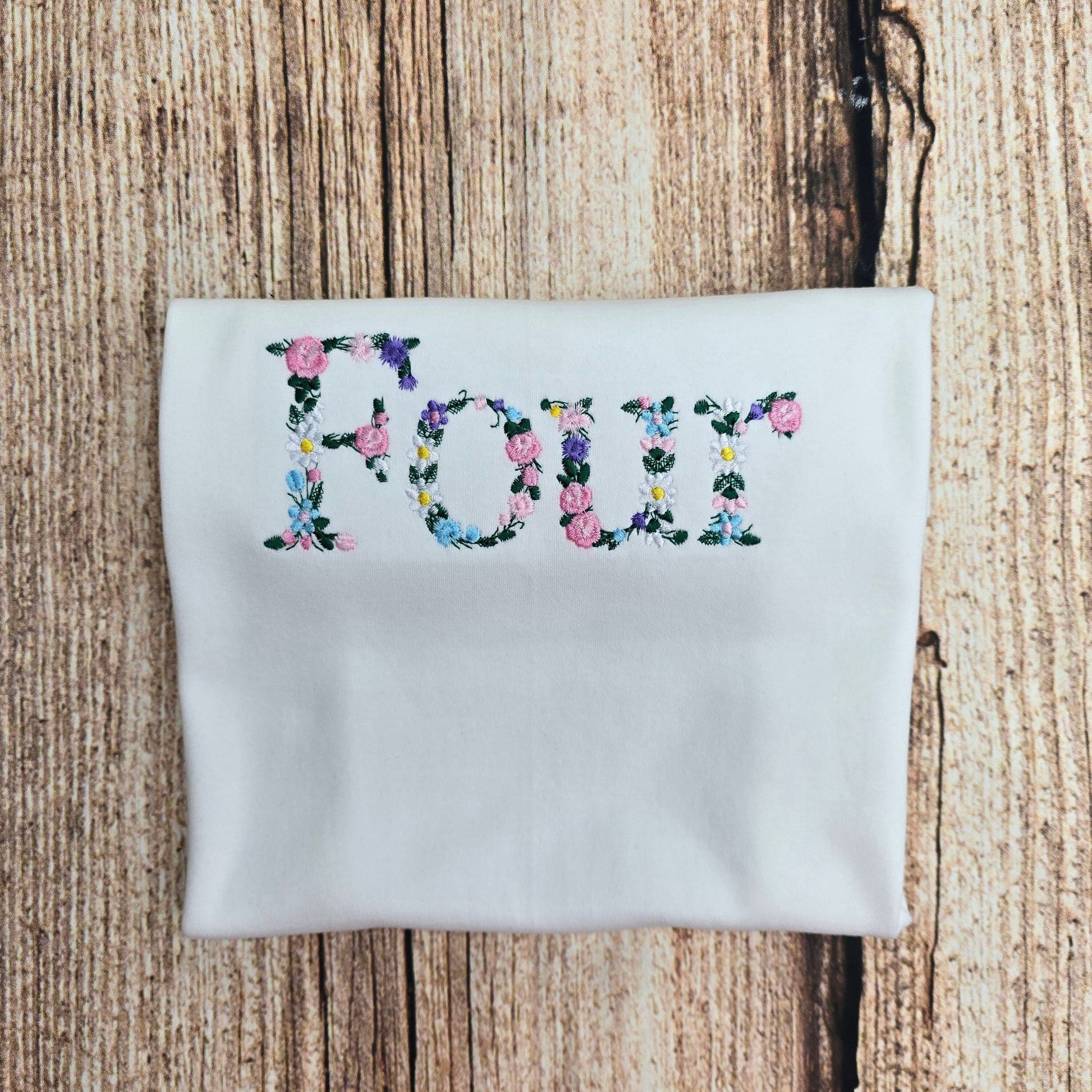 Floral birthday tshirt, childs embroidered flower tee, Kids clothing, childrens gift, girls birthday top