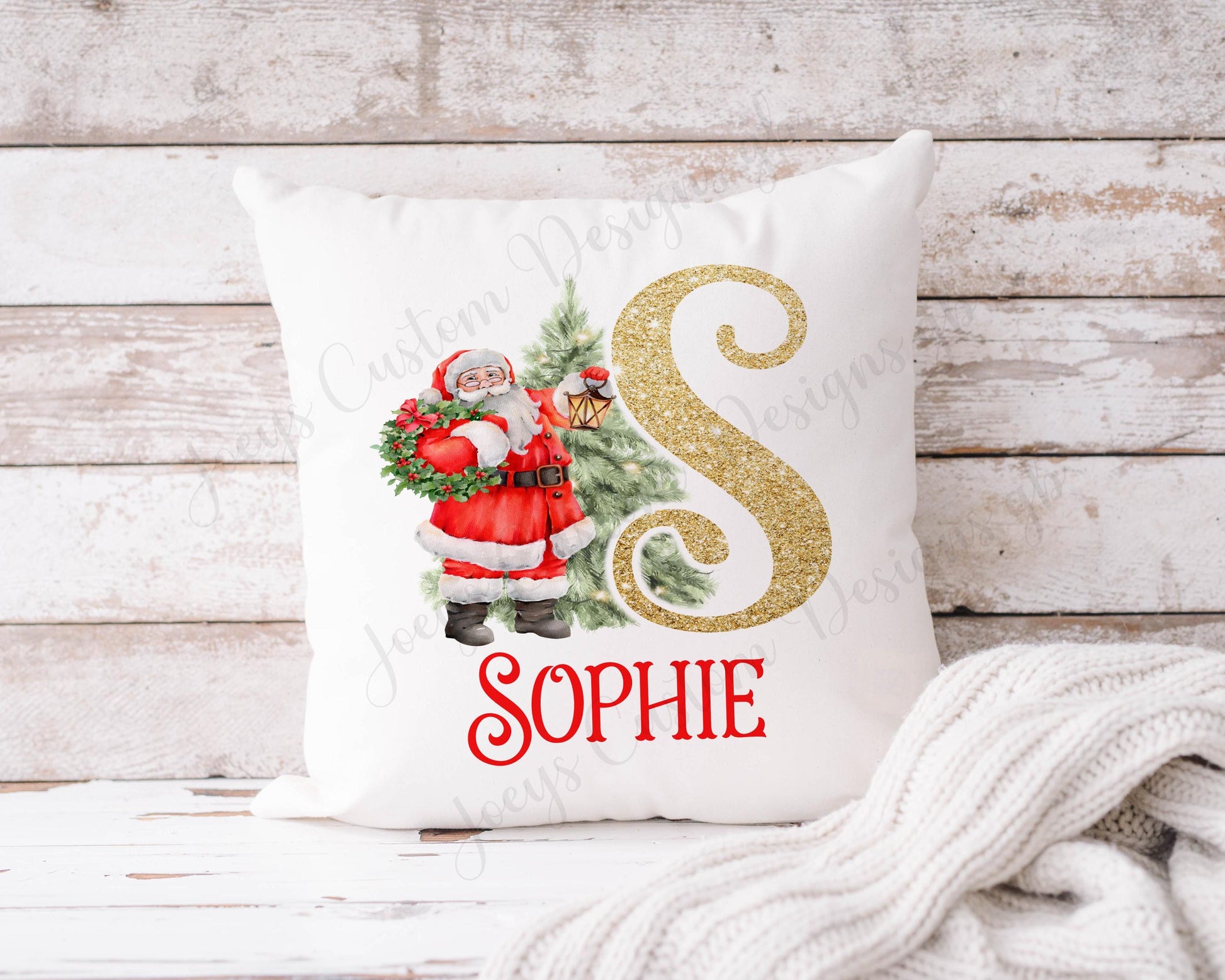 Personalised Cushion, Father Christmas scatter cushion, Childrens xmas pillow, Cushion cover, kids Santa cushion